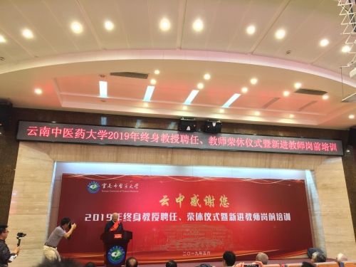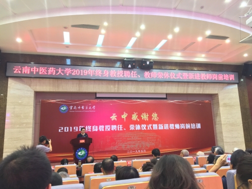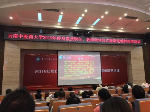 省级重点实验室讯(通讯员 杨锐) 5月10日上午,学校在翰墨楼一楼报告厅举行“云南中医药大学2019年终身教授聘任、教师荣休仪式暨新进教师岗前培训”。省级重点实验室2016年以来新进博士陈佳、杨锐、郭英等7人参加了此次培训活动。本次活动由校党委副书记、校长熊磊主持。会上,校党委书记王翠岗首先致辞并对新进教师提出四点希望即:要有高尚的人格修养;要有大爱的情怀;要有严谨治学态度;要树立终身学习理念。
