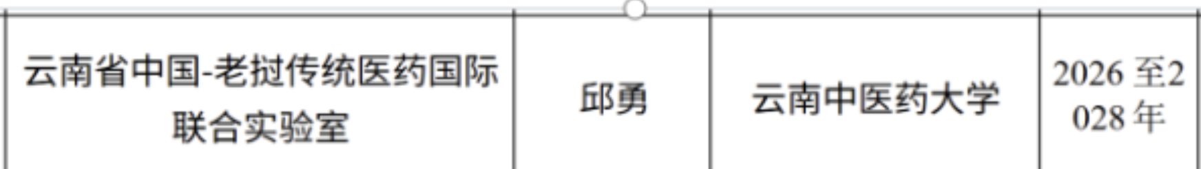 (重点实验室讯/通讯员 陈蓉)2025年6月11日,云南省科技厅公布了2025年度云南省国际联合实验室立项名单,由我校邱勇教授领衔的“云南省中国-老挝传统医药国际联合实验室”项目获得立项。
